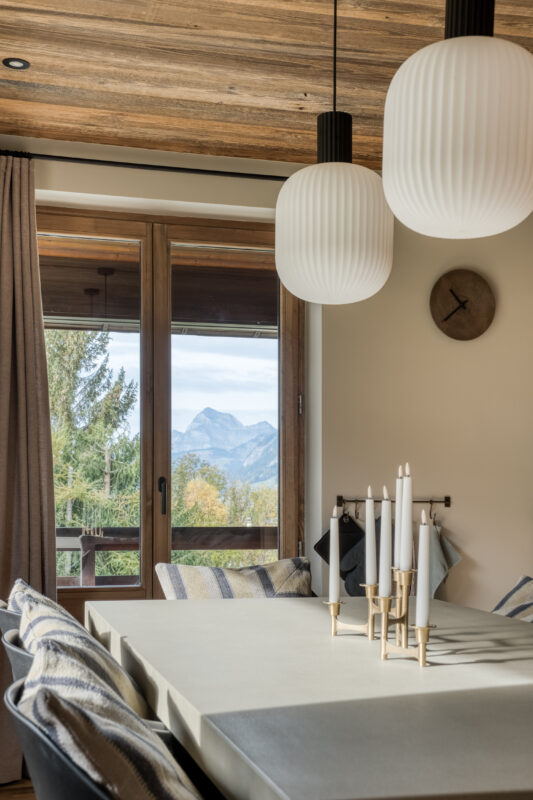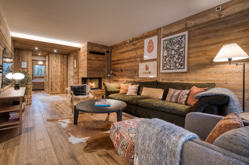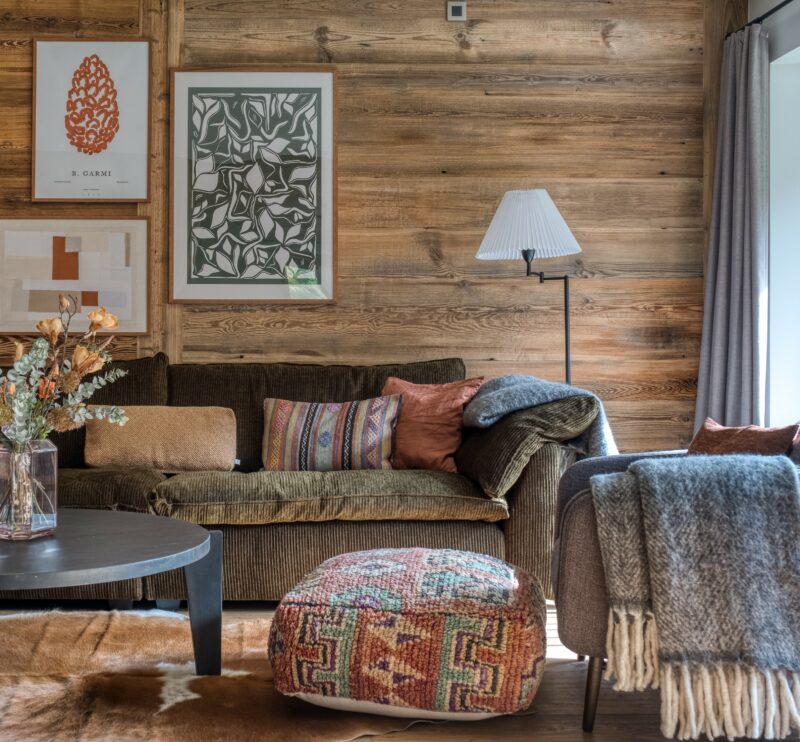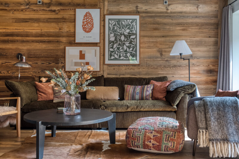 Megeve stue defranske alper rejsedestination skiferie skuihytte frankrig sofa udsigt til bjergene