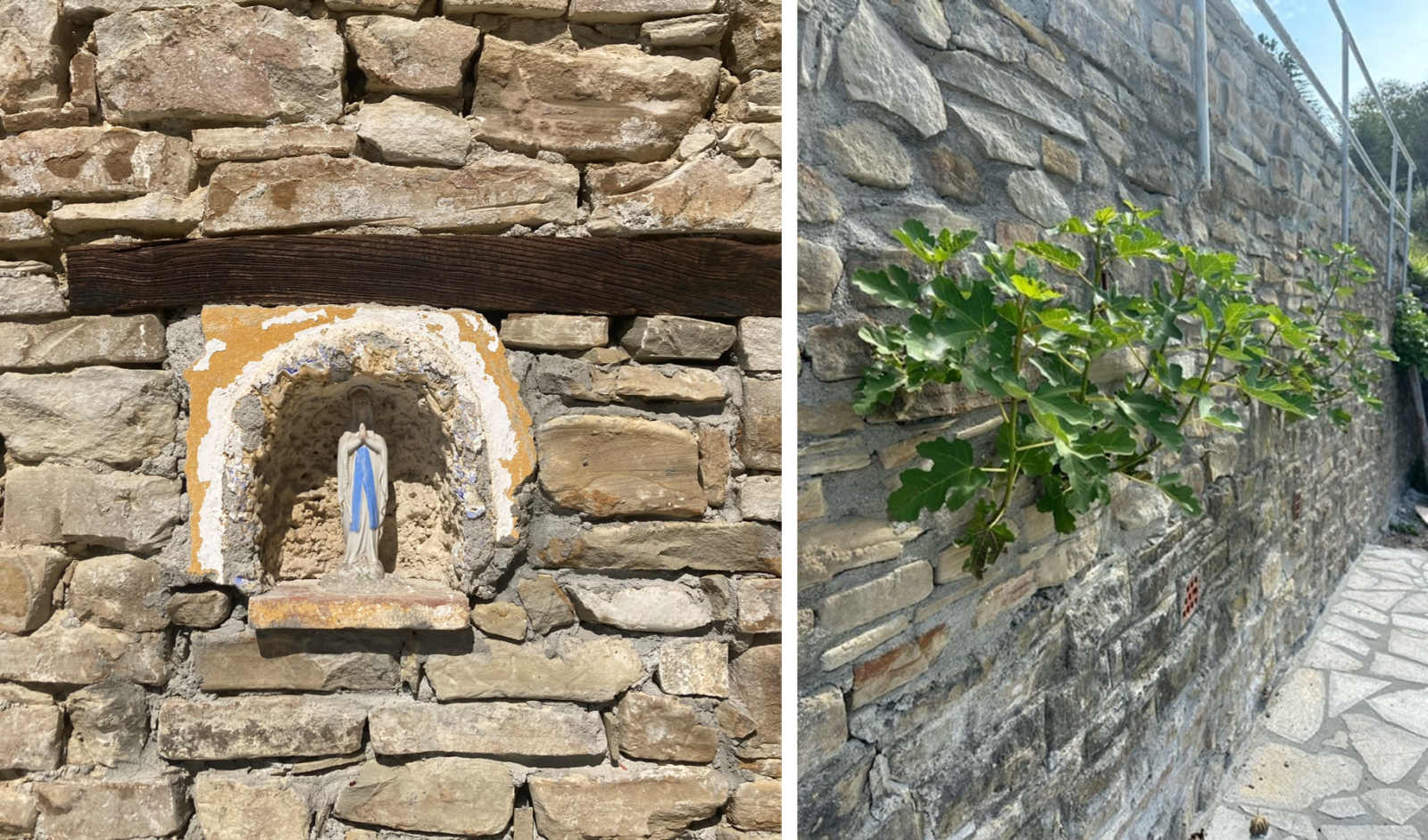 F.eks. har vi gjort en dyd ud af at bevare “Madonnaen”, som er muret i ydervæggen på det ellers totalt istandsatte hus til Quantus – Madonnaen passer på huset og dets beboere. Tilhørende samme bolig finder man en væg, som understøtter den kæmpestore terrasse, hvor de oprindelige planter er bevaret, trods renovering af væggen. I det hus, som i alle de andre, er man omgivet af skønne vinmarker, hvor druerne var helt plukkemodne og klar til årets høst.