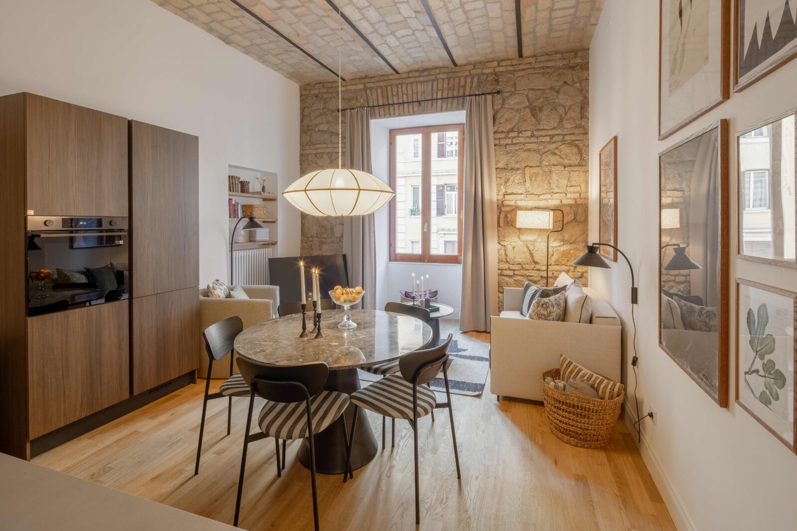 Den ene er en storbylejlighed i Roms historiske centrum. Boligen har ca. 90 m2 og er smukt renoveret med bevarelse af bygningens originale detaljer såsom blotlagte stenvægge og -lofter. Comfort-lejligheden har to soveværelser og to badeværelser samt adgang til fælles tagterrasse. Se de helt nye billeder af boligen i dette indlæg.