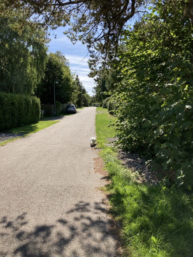 Selve grunden er på ca. 1000 m2, og den ligger rigtigt i forhold til solen, så der er masser af sol hele dagen. Lige nu er grunden vokset til, og der ligger derfor et oprydningsarbejde foran os, men der er fint lukket af mod naboer, og der bliver en skøn have med plads til masser af aktiviteter.