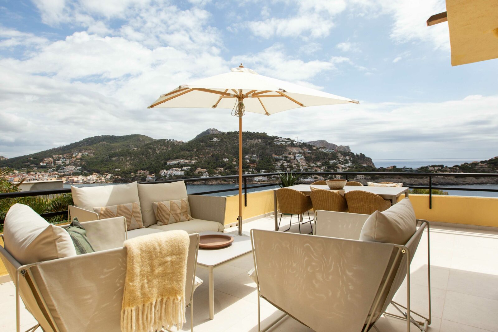 Bygget ind i en klippeskråning, helt tæt ved den rustikke havnefront, finder ejerne i MH10 Comfort+ deres nye luksuriøse feriebolig. Lejligheden har den mest fantastiske panoramaudsigt over indsejlingen til Port d’Andratx bugten, som kan nydes fra den store terrasse eller fra flere af lejlighedens værelser.