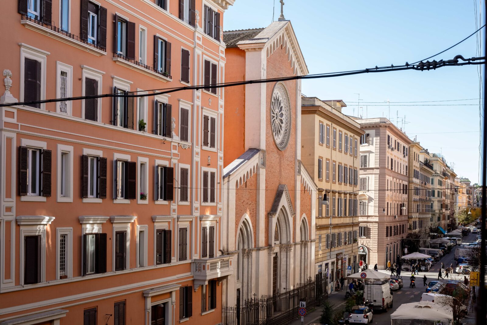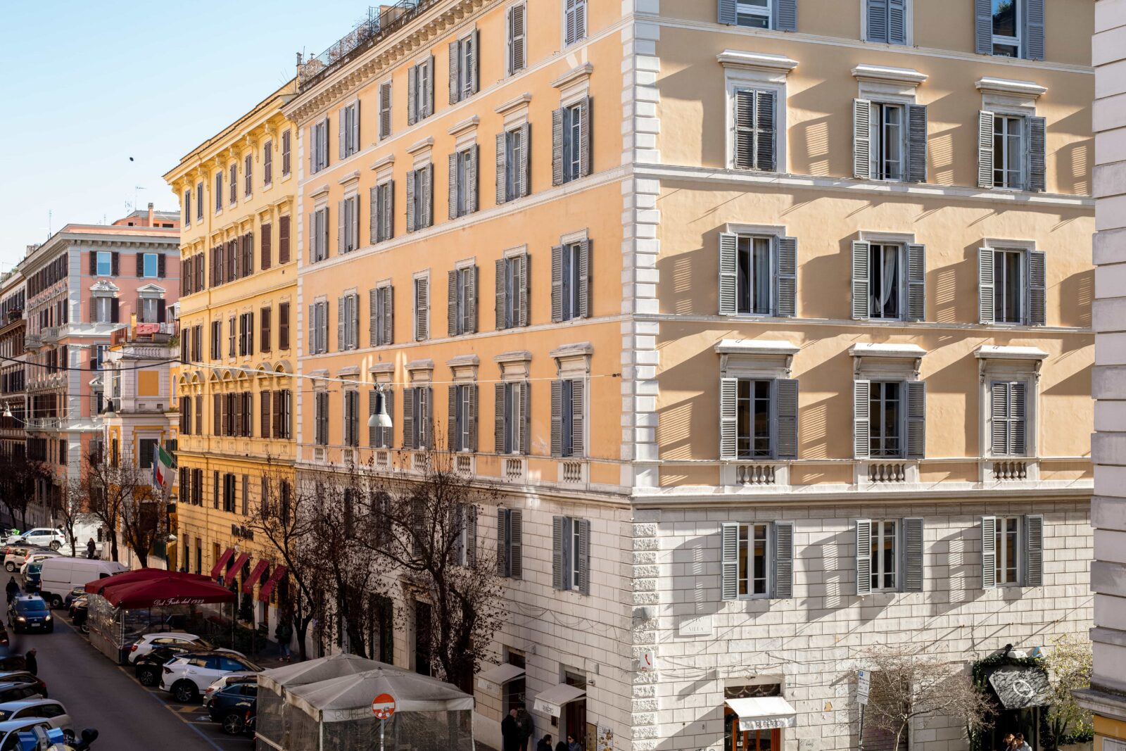 De høje, sydvendte vinduer trækker byens lys og summen ind i boligen, hvilket er et vigtigt kriterie, når vi søger boliger i storbyerne. Det giver ejerne mulighed for at opleve Roms unikke atmosfære, både ude og hjemme.