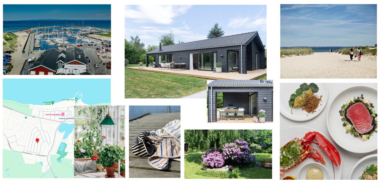 Det kreative team har fra starten fokus på det overordnede udtryk i boligen for at sikre den råde tråd og den helt rigtige stemning. Herunder ses et udpluk af det moodboard, der er udarbejdet som inspiration til udtrykket i sommerhuset til MH16 Comfort+.