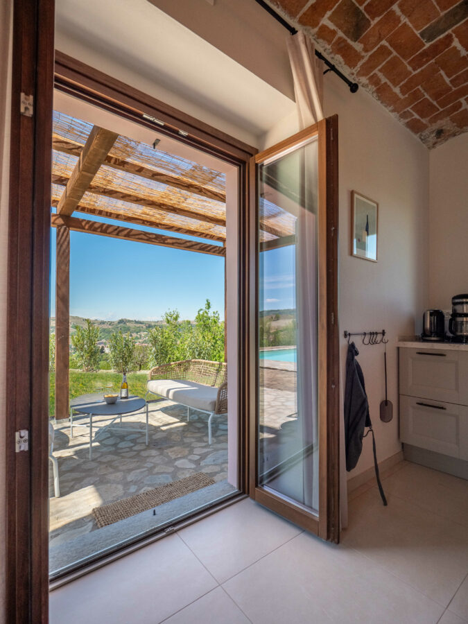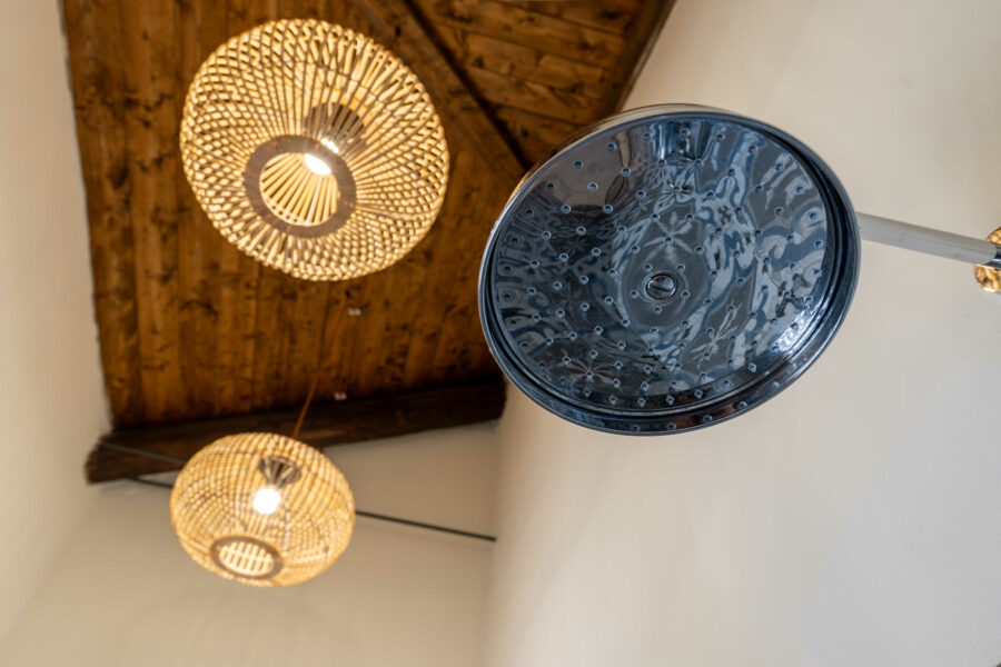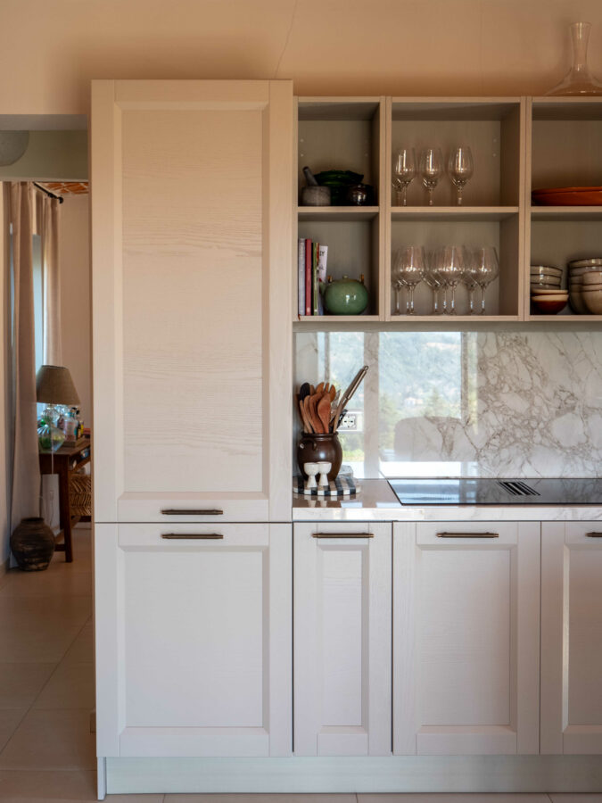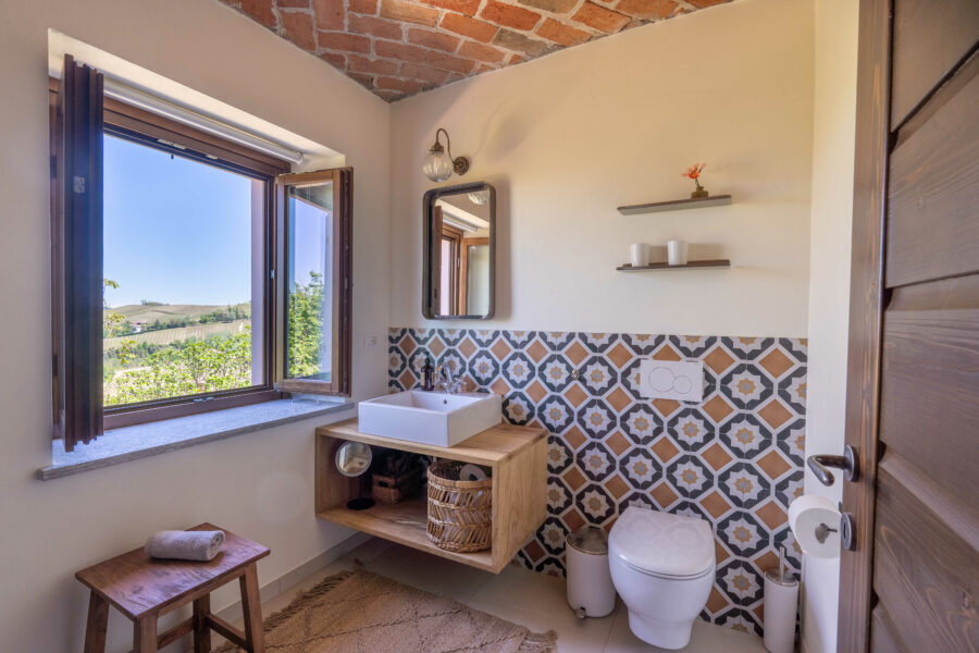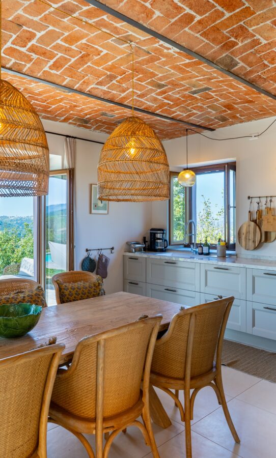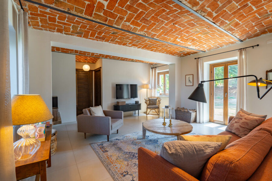Der er tænkt funktionalitet, lokalmiljø og hjemmelig stemning ind i indretningen af det charmerende landhus, hvor der er plads til 8 personer, som kan nyde det afslappede italienske landliv. Som noget ganske særligt har boligen en autentisk vinkælder, der ligesom alt andet er totalrenoveret, og nu indbyder til vinsmagning og hyggelige stunder. Oftest er kældre i de gamle norditaliske gårde i for dårlig stand, og må under renoveringen fyldes med jord og udelukkes som en del af boligen. Det var derfor en unik mulighed for arkitekten og indretningsteamet at skabe et rustikt rum til ejerne i stil med omgivelserne. Vinkælderen er blandt andet indrettet med antikke stikkontakter til lamperne, italienske vinballoner, dartspil samt den originale vintønde, der anvendes som barbord.