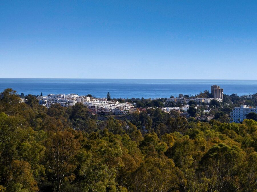 Området Nueva Andalucias er placeret mellem den majestætiske bjergkæde Sierra de Ronda og kyststrækningen på Costa del Sol, og er dermed omkranset af fantastisk smuk natur. Boligen er placeret i hjertet af Golf Valley, som er et af de mest eksklusive og udbyggede, gamle områder i Marbella, der ligeledes er kendt for sine rolige gader og skønne atmosfære. Foruden den betagende panoramaudsigt, er ejendommen tæt på frodige omgivelser som Marbella Lake samt flere golfbaner og har lækre fællesområder med særpræget beplantning og en lækker pool.