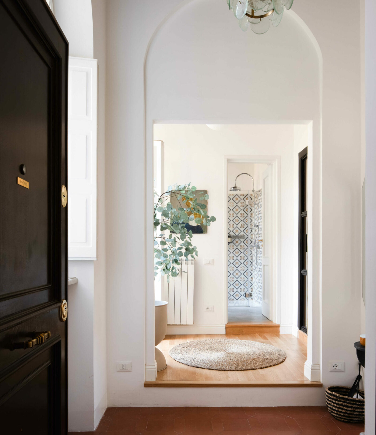 Boligen er på omkring 88 m2 fordelt på entré, køkken, stue, to soveværelser og to badeværelser. Dertil følger en lille balkon mod gården med, hvilket hører til sjældenhederne i Rom. Vi har renoveret lejligheden med respekt for dens unikke detaljer og opdateret planløsningen, så der er plads til seks sovepladser.